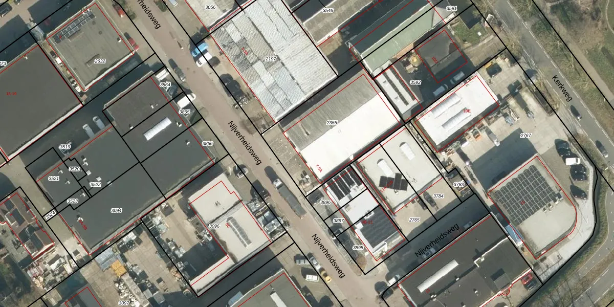 Het perceel waarop Nijverheidsweg 9 staat heeft een oppervlakte van 1000 m². Dit is een zeer groot perceel. De perceeloppervlakte wordt geregistreerd door het Kadaster. Gedetailleerde informatie over de maten van dit perceel kunt u vinden in het rapport Kadastrale kaart met maatvoering van Nijverheidsweg 9.