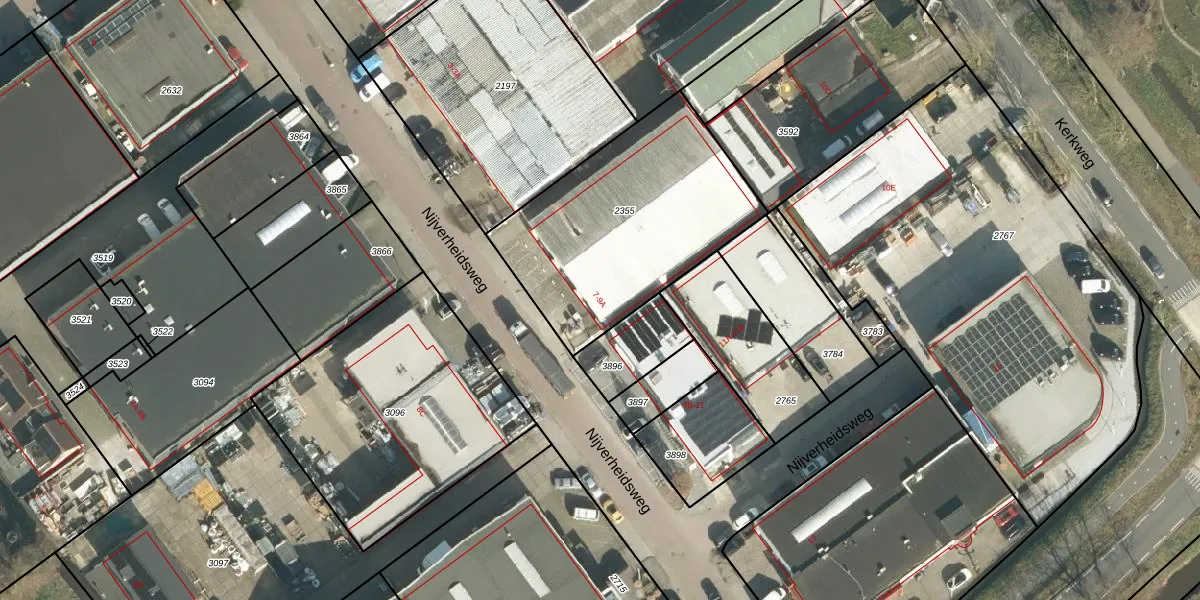 Het perceel waarop Nijverheidsweg 9-A staat heeft een oppervlakte van 1000 m². Dit is een zeer groot perceel. De perceeloppervlakte wordt geregistreerd door het Kadaster. Gedetailleerde informatie over de maten van dit perceel kunt u vinden in het rapport Kadastrale kaart met maatvoering van Nijverheidsweg 9-A.