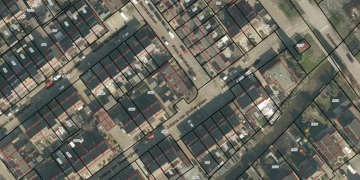 Prins Bernhardlaan 12 is gelegen op kadastraal perceel GSB00G3543. Deze kadastrale aanduiding is uniek en wordt gebruikt door het Kadaster om eigendomsrechten en andere zakelijke rechten vast te leggen. Het perceel maakt onderdeel uit van de kadastrale gemeente Giessenburg.