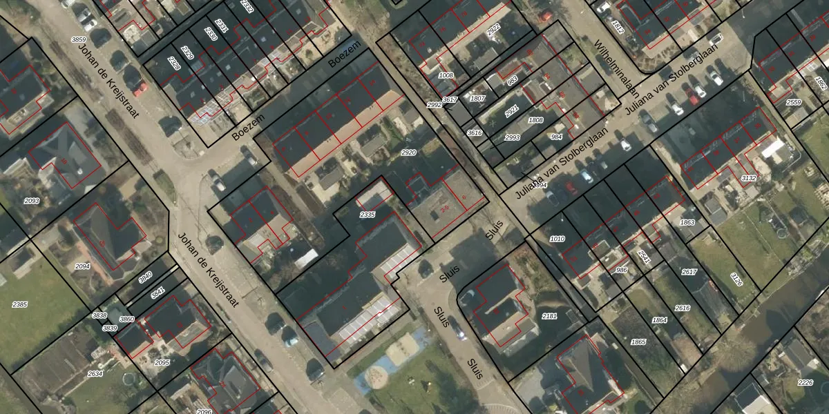 Het perceel waarop Sluis 2 staat heeft een oppervlakte van 1800 m². Dit is een zeer groot perceel. De perceeloppervlakte wordt geregistreerd door het Kadaster. Gedetailleerde informatie over de maten van dit perceel kunt u vinden in het rapport Kadastrale kaart met maatvoering van Sluis 2.
