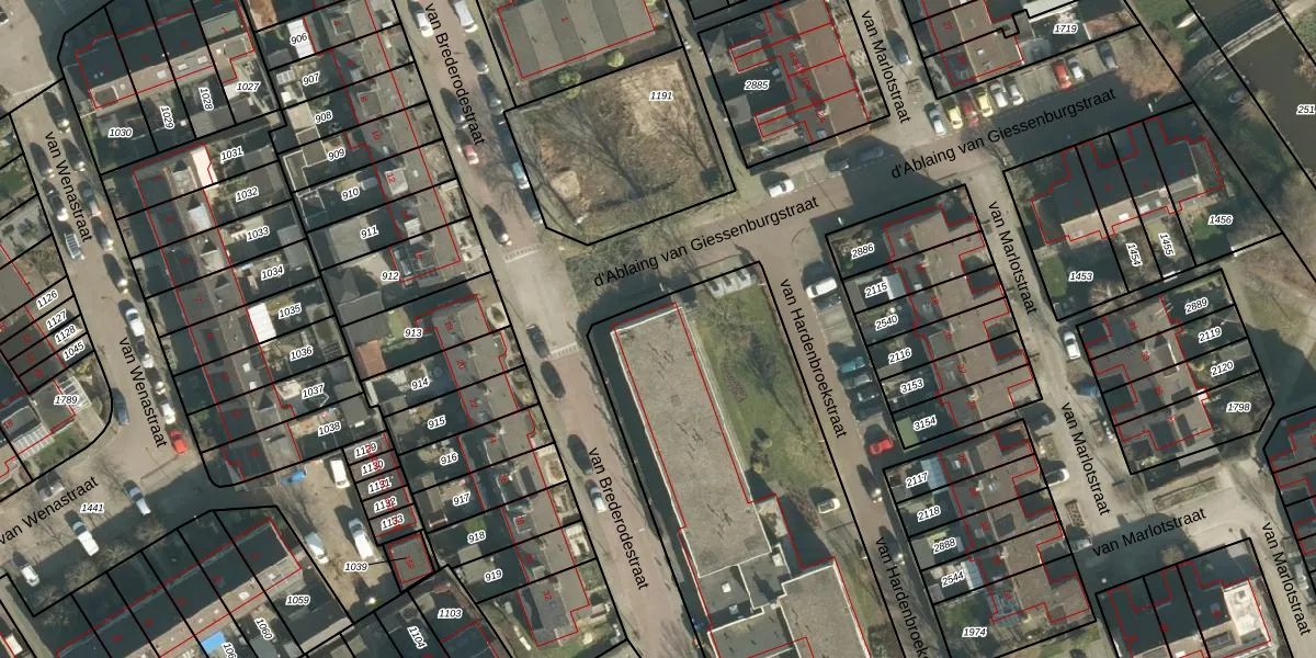 van Brederodestraat 13 is gelegen op kadastraal perceel GSB00G2521. Deze kadastrale aanduiding is uniek en wordt gebruikt door het Kadaster om eigendomsrechten en andere zakelijke rechten vast te leggen. Het perceel maakt onderdeel uit van de kadastrale gemeente Giessenburg.