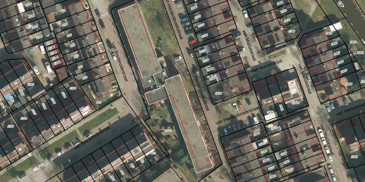 van Brederodestraat 41 is gelegen op kadastraal perceel GSB00G2521. Deze kadastrale aanduiding is uniek en wordt gebruikt door het Kadaster om eigendomsrechten en andere zakelijke rechten vast te leggen. Het perceel maakt onderdeel uit van de kadastrale gemeente Giessenburg.
