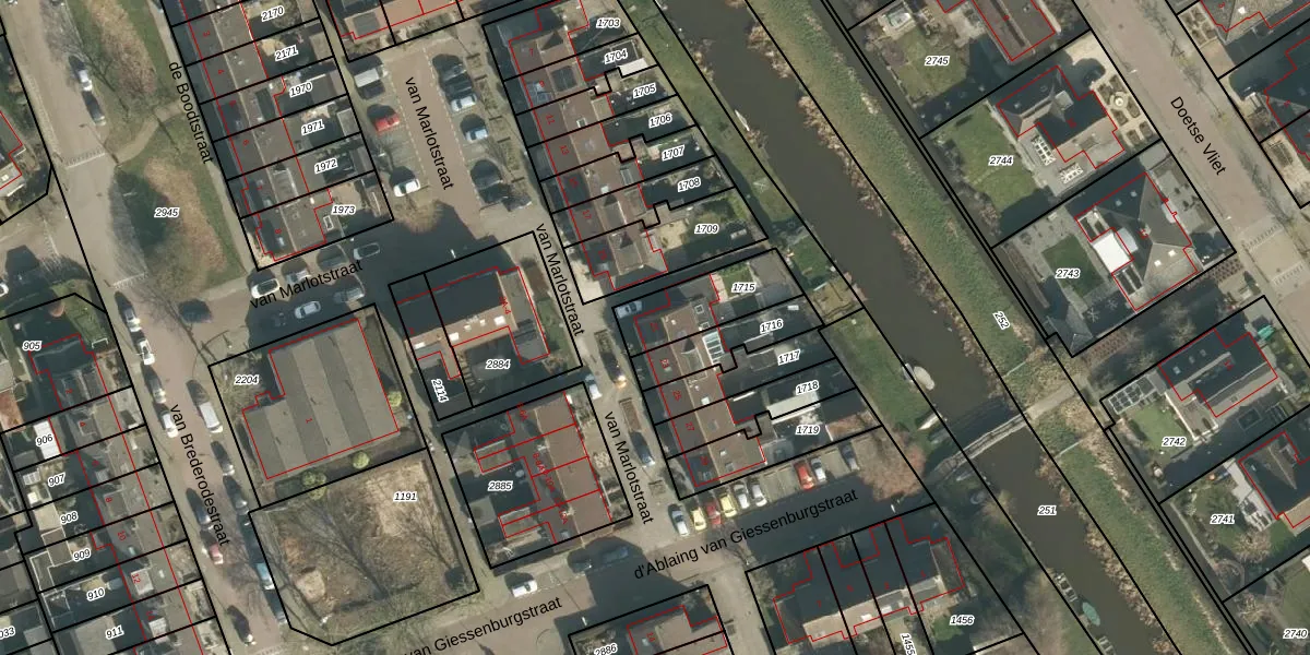 van Marlotstraat 21 is gelegen op kadastraal perceel GSB00G1715. Deze kadastrale aanduiding is uniek en wordt gebruikt door het Kadaster om eigendomsrechten en andere zakelijke rechten vast te leggen. Het perceel maakt onderdeel uit van de kadastrale gemeente Giessenburg.