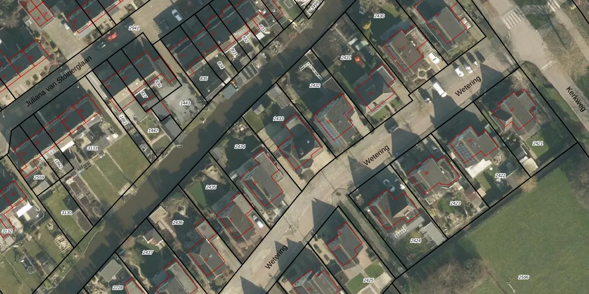 Wetering 21 is gelegen op kadastraal perceel GSB00G2433. Deze kadastrale aanduiding is uniek en wordt gebruikt door het Kadaster om eigendomsrechten en andere zakelijke rechten vast te leggen. Het perceel maakt onderdeel uit van de kadastrale gemeente Giessenburg.