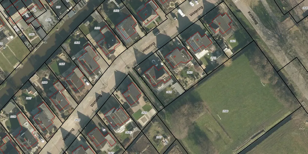 Wetering 36 is gelegen op kadastraal perceel GSB00G2424. Deze kadastrale aanduiding is uniek en wordt gebruikt door het Kadaster om eigendomsrechten en andere zakelijke rechten vast te leggen. Het perceel maakt onderdeel uit van de kadastrale gemeente Giessenburg.
