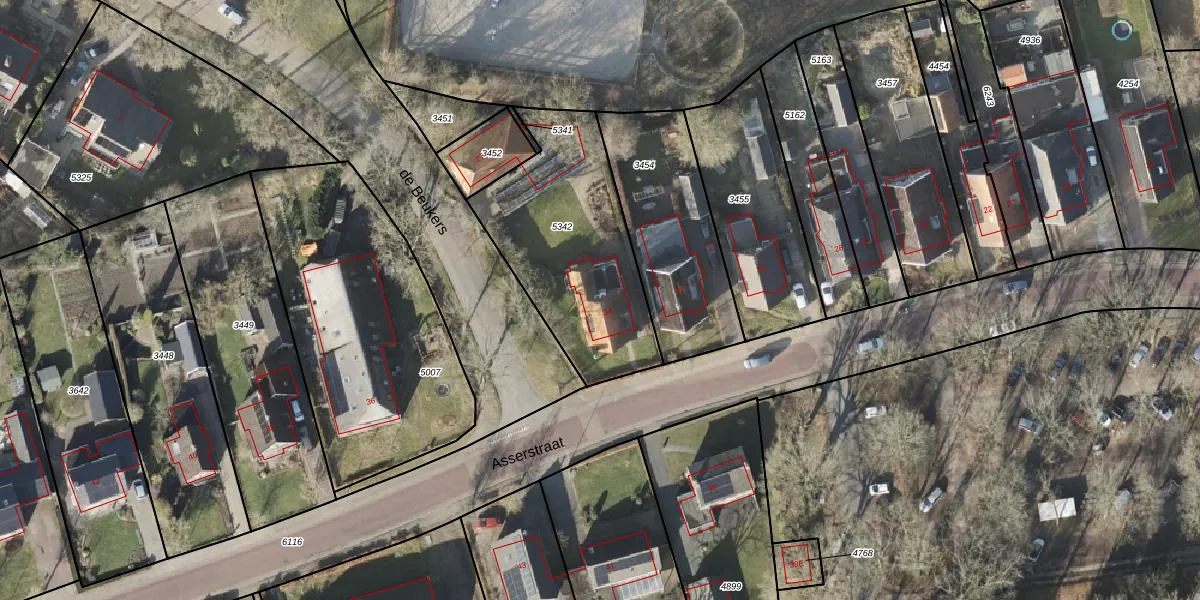 Asserstraat 34 is gelegen op kadastraal perceel GTN00E5342. Deze kadastrale aanduiding is uniek en wordt gebruikt door het Kadaster om eigendomsrechten en andere zakelijke rechten vast te leggen. Het perceel maakt onderdeel uit van de kadastrale gemeente Gieten.