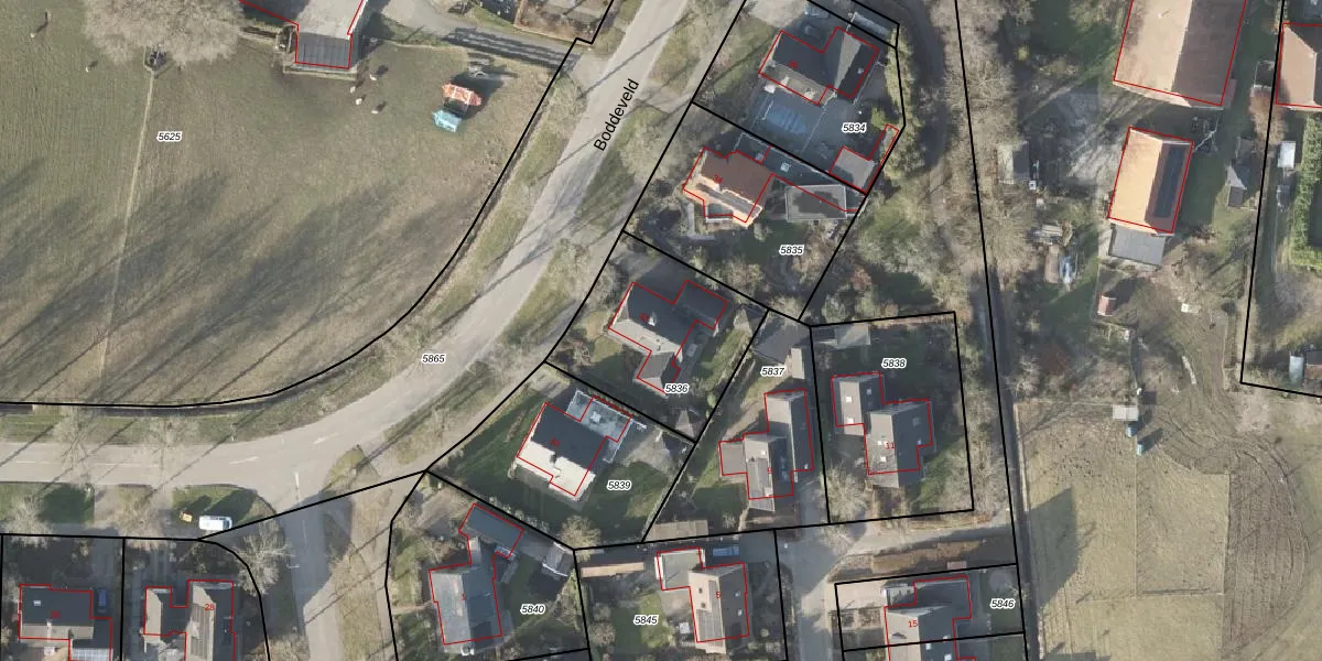 Het perceel waarop Boddeveld 32 staat heeft een oppervlakte van 582 m². Dit is een groot perceel. De perceeloppervlakte wordt geregistreerd door het Kadaster. Gedetailleerde informatie over de maten van dit perceel kunt u vinden in het rapport Kadastrale kaart met maatvoering van Boddeveld 32.