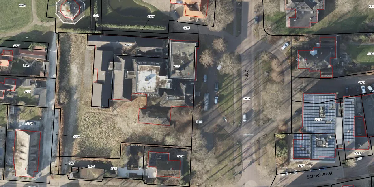 Het perceel waarop Brink 9 staat heeft een oppervlakte van 3838 m². Dit is een zeer groot perceel. De perceeloppervlakte wordt geregistreerd door het Kadaster. Gedetailleerde informatie over de maten van dit perceel kunt u vinden in het rapport Kadastrale kaart met maatvoering van Brink 9.