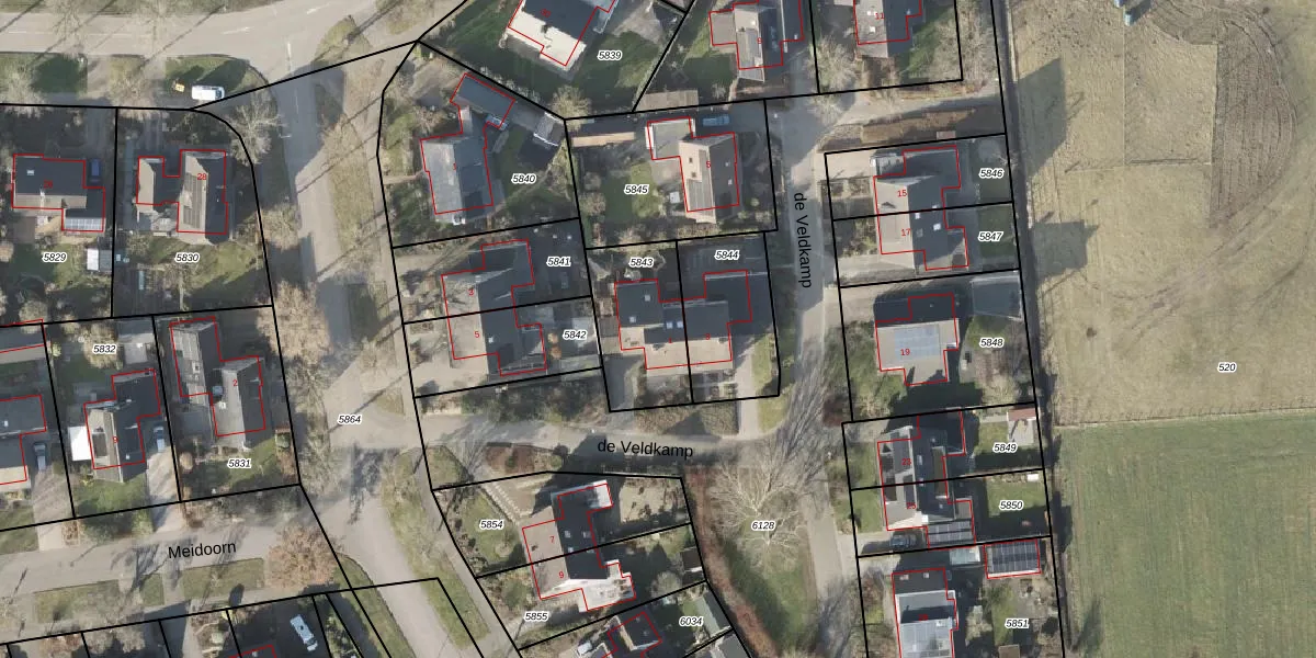 Het perceel waarop de Veldkamp 1 staat heeft een oppervlakte van 332 m². Dit is een groot perceel. De perceeloppervlakte wordt geregistreerd door het Kadaster. Gedetailleerde informatie over de maten van dit perceel kunt u vinden in het rapport Kadastrale kaart met maatvoering van de Veldkamp 1.