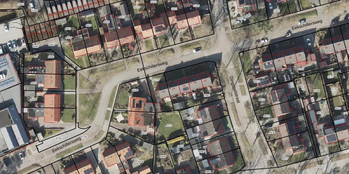 Het perceel waarop Eekschillersweg 16 staat heeft een oppervlakte van 680 m². Dit is een groot perceel. De perceeloppervlakte wordt geregistreerd door het Kadaster. Gedetailleerde informatie over de maten van dit perceel kunt u vinden in het rapport Kadastrale kaart met maatvoering van Eekschillersweg 16.