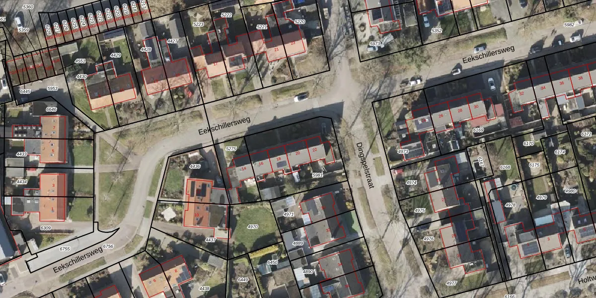 Het perceel waarop Eekschillersweg 20 staat heeft een oppervlakte van 680 m². Dit is een groot perceel. De perceeloppervlakte wordt geregistreerd door het Kadaster. Gedetailleerde informatie over de maten van dit perceel kunt u vinden in het rapport Kadastrale kaart met maatvoering van Eekschillersweg 20.