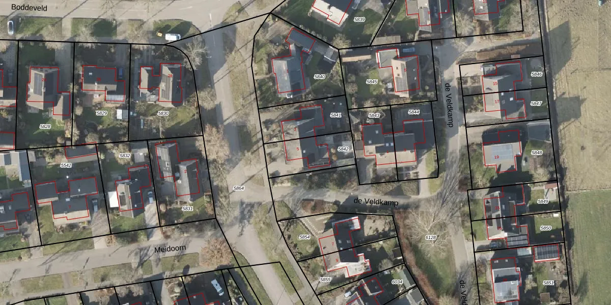 Het perceel waarop Grote Kamp 5 staat heeft een oppervlakte van 326 m². Dit is een groot perceel. De perceeloppervlakte wordt geregistreerd door het Kadaster. Gedetailleerde informatie over de maten van dit perceel kunt u vinden in het rapport Kadastrale kaart met maatvoering van Grote Kamp 5.