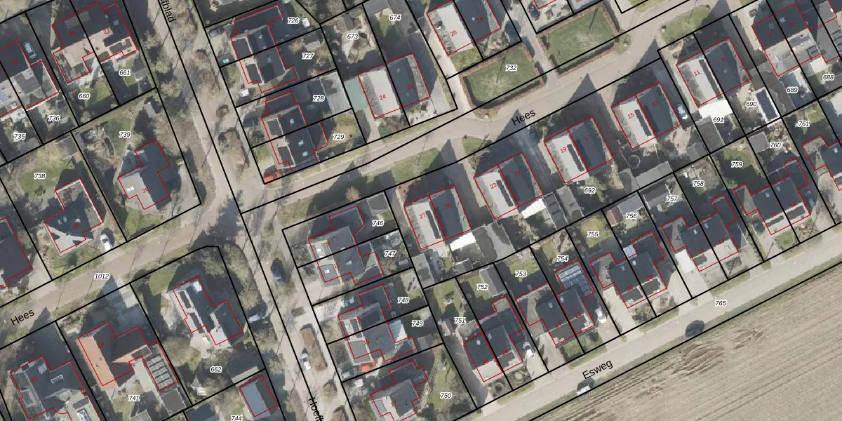 Het perceel waarop Hees 27 staat heeft een oppervlakte van 1892 m². Dit is een zeer groot perceel. De perceeloppervlakte wordt geregistreerd door het Kadaster. Gedetailleerde informatie over de maten van dit perceel kunt u vinden in het rapport Kadastrale kaart met maatvoering van Hees 27.