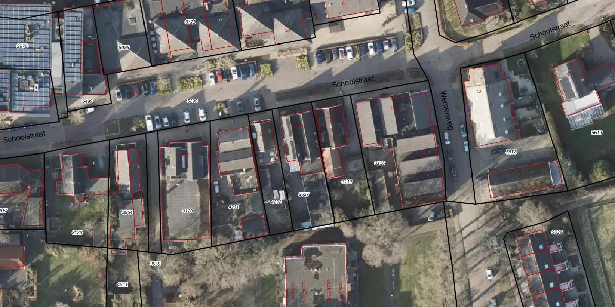 Het perceel waarop Schoolstraat 12-c staat heeft een oppervlakte van 528 m². Dit is een groot perceel. De perceeloppervlakte wordt geregistreerd door het Kadaster. Gedetailleerde informatie over de maten van dit perceel kunt u vinden in het rapport Kadastrale kaart met maatvoering van Schoolstraat 12-c.