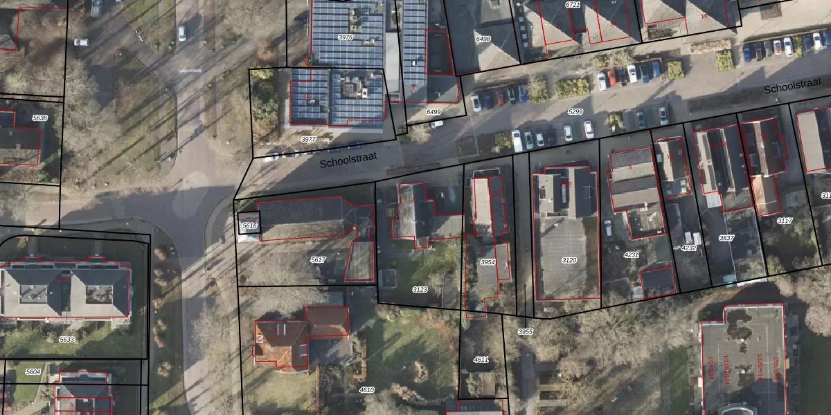 Het perceel waarop Schoolstraat 2 staat heeft een oppervlakte van 665 m². Dit is een groot perceel. De perceeloppervlakte wordt geregistreerd door het Kadaster. Gedetailleerde informatie over de maten van dit perceel kunt u vinden in het rapport Kadastrale kaart met maatvoering van Schoolstraat 2.