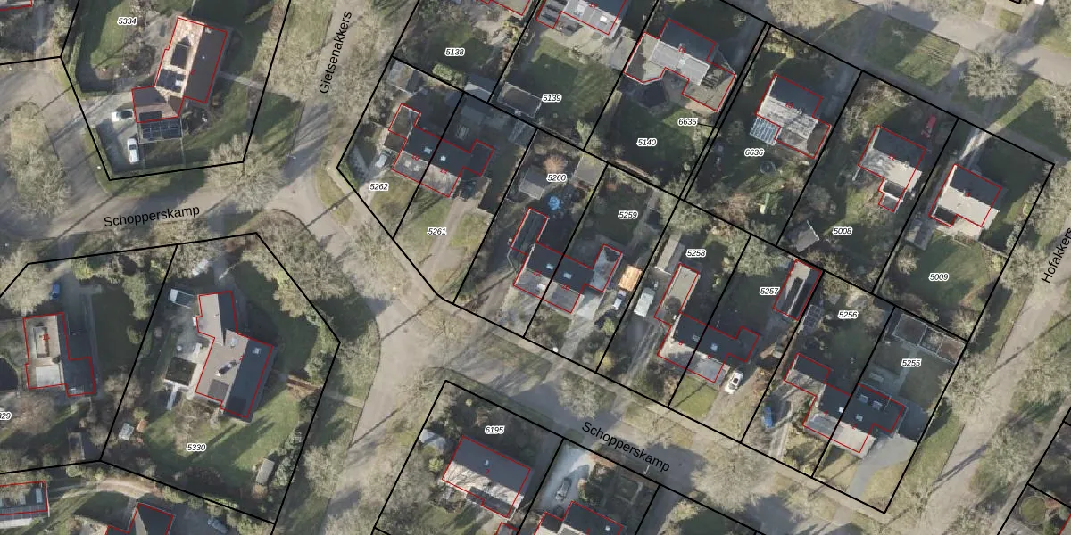 Het perceel waarop Schopperskamp 12 staat heeft een oppervlakte van 541 m². Dit is een groot perceel. De perceeloppervlakte wordt geregistreerd door het Kadaster. Gedetailleerde informatie over de maten van dit perceel kunt u vinden in het rapport Kadastrale kaart met maatvoering van Schopperskamp 12.