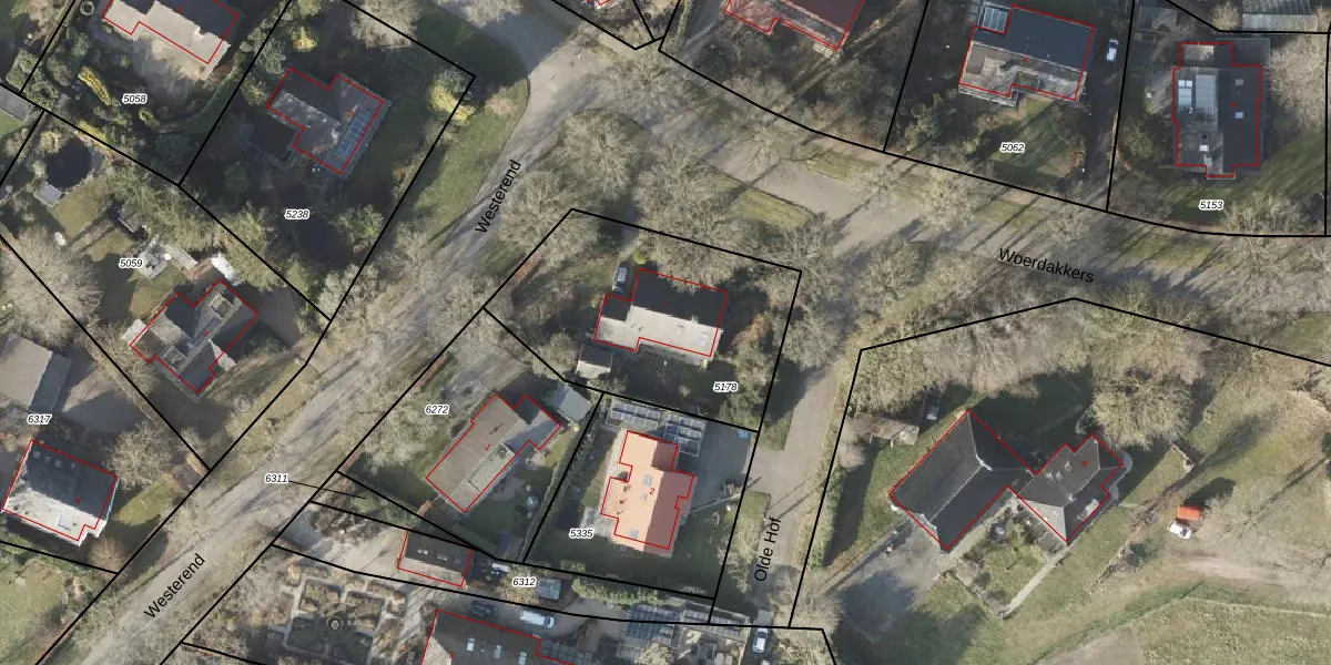 Het perceel waarop Woerdakkers 1 staat heeft een oppervlakte van 996 m². Dit is een groot perceel. De perceeloppervlakte wordt geregistreerd door het Kadaster. Gedetailleerde informatie over de maten van dit perceel kunt u vinden in het rapport Kadastrale kaart met maatvoering van Woerdakkers 1.