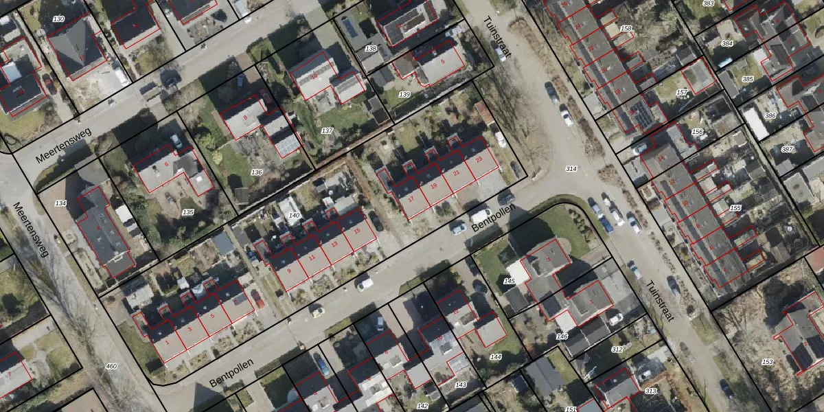 Het perceel waarop Bentpollen 17 staat heeft een oppervlakte van 2845 m². Dit is een zeer groot perceel. De perceeloppervlakte wordt geregistreerd door het Kadaster. Gedetailleerde informatie over de maten van dit perceel kunt u vinden in het rapport Kadastrale kaart met maatvoering van Bentpollen 17.