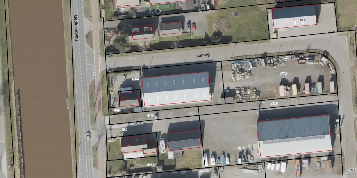 Het perceel waarop Nering 2 staat heeft een oppervlakte van 1381 m². Dit is een zeer groot perceel. De perceeloppervlakte wordt geregistreerd door het Kadaster. Gedetailleerde informatie over de maten van dit perceel kunt u vinden in het rapport Kadastrale kaart met maatvoering van Nering 2.