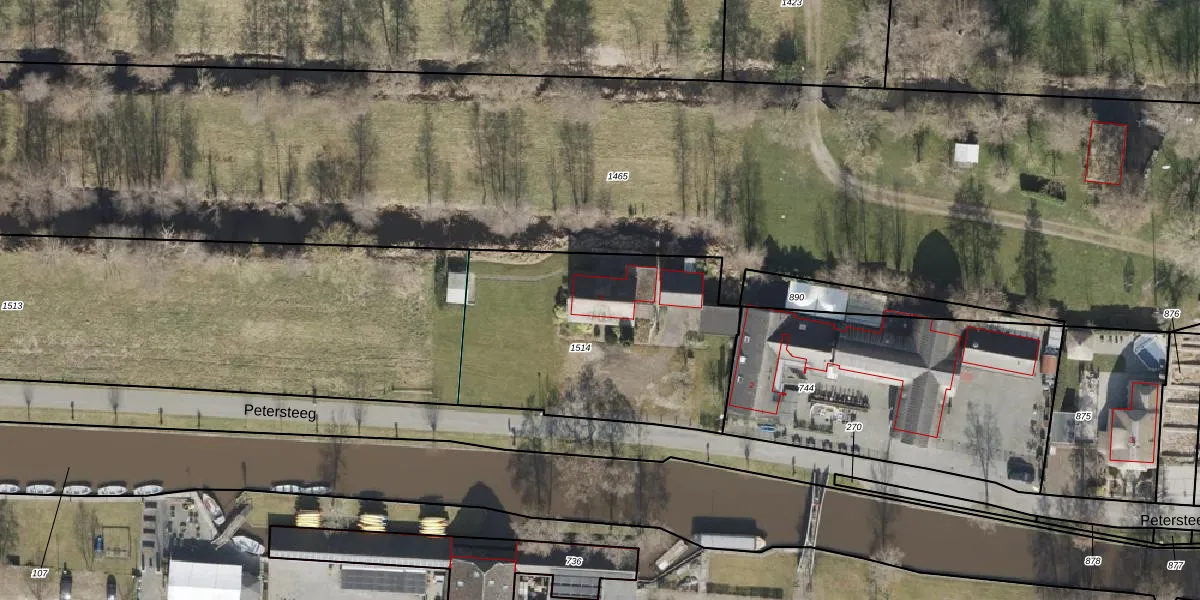 Het perceel waarop Petersteeg 1 staat heeft een oppervlakte van 1215 m². Dit is een zeer groot perceel. De perceeloppervlakte wordt geregistreerd door het Kadaster. Gedetailleerde informatie over de maten van dit perceel kunt u vinden in het rapport Kadastrale kaart met maatvoering van Petersteeg 1.