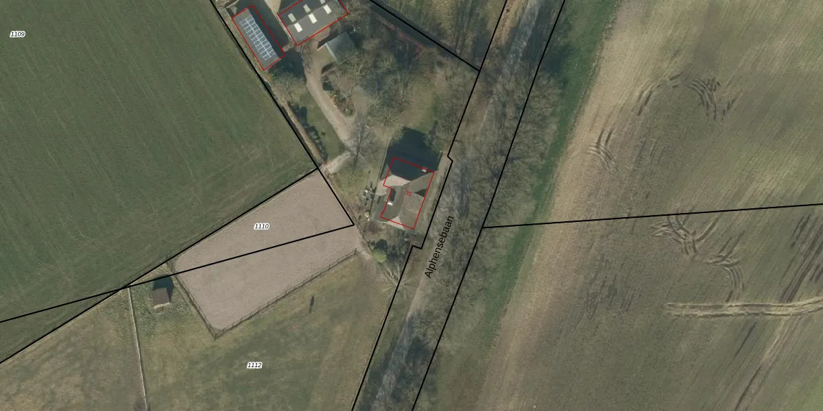 Het perceel waarop Alphensebaan 31 staat heeft een oppervlakte van 1,3 ha. Dit is een zeer groot perceel. De perceeloppervlakte wordt geregistreerd door het Kadaster. Gedetailleerde informatie over de maten van dit perceel kunt u vinden in het rapport Kadastrale kaart met maatvoering van Alphensebaan 31.