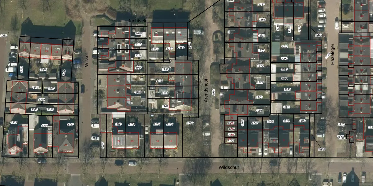 Gebruik de zoekbalk of klik op een perceel voor informatie over de adressen binnen dit perceel.
