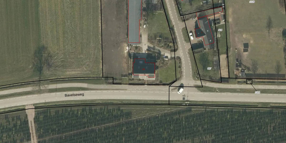 Bavelseweg 100 is gelegen op kadastraal perceel GZE00P1340. Deze kadastrale aanduiding is uniek en wordt gebruikt door het Kadaster om eigendomsrechten en andere zakelijke rechten vast te leggen. Het perceel maakt onderdeel uit van de kadastrale gemeente Gilze en Rijen.