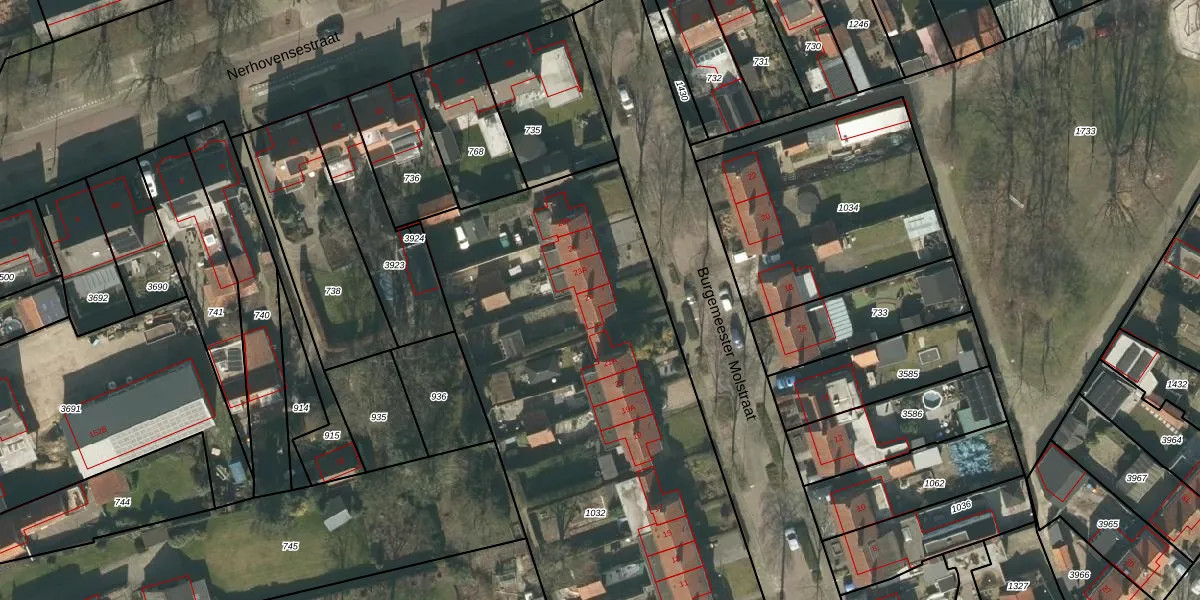 Het perceel waarop Burgemeester Molstraat 23 staat heeft een oppervlakte van 3532 m². Dit is een zeer groot perceel. De perceeloppervlakte wordt geregistreerd door het Kadaster. Gedetailleerde informatie over de maten van dit perceel kunt u vinden in het rapport Kadastrale kaart met maatvoering van Burgemeester Molstraat 23.