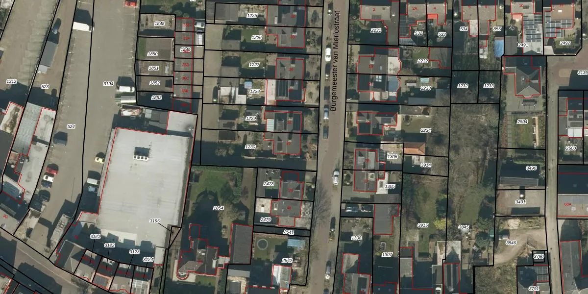 Het perceel waarop Burgemeester van Mierlostraat 36 staat heeft een oppervlakte van 490 m². Dit is een groot perceel. De perceeloppervlakte wordt geregistreerd door het Kadaster. Gedetailleerde informatie over de maten van dit perceel kunt u vinden in het rapport Kadastrale kaart met maatvoering van Burgemeester van Mierlostraat 36.