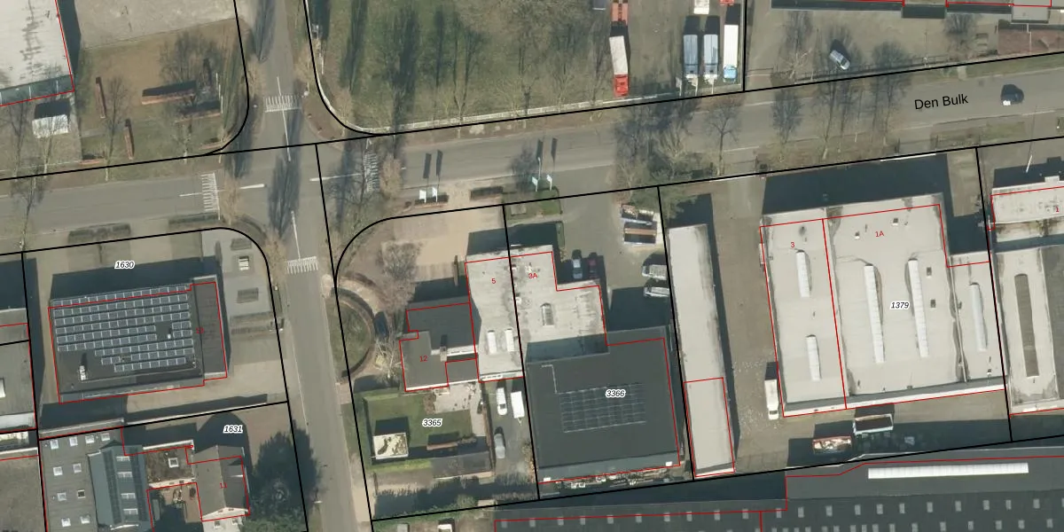Het perceel waarop Den Bulk 3-A staat heeft een oppervlakte van 1638 m². Dit is een zeer groot perceel. De perceeloppervlakte wordt geregistreerd door het Kadaster. Gedetailleerde informatie over de maten van dit perceel kunt u vinden in het rapport Kadastrale kaart met maatvoering van Den Bulk 3-A.