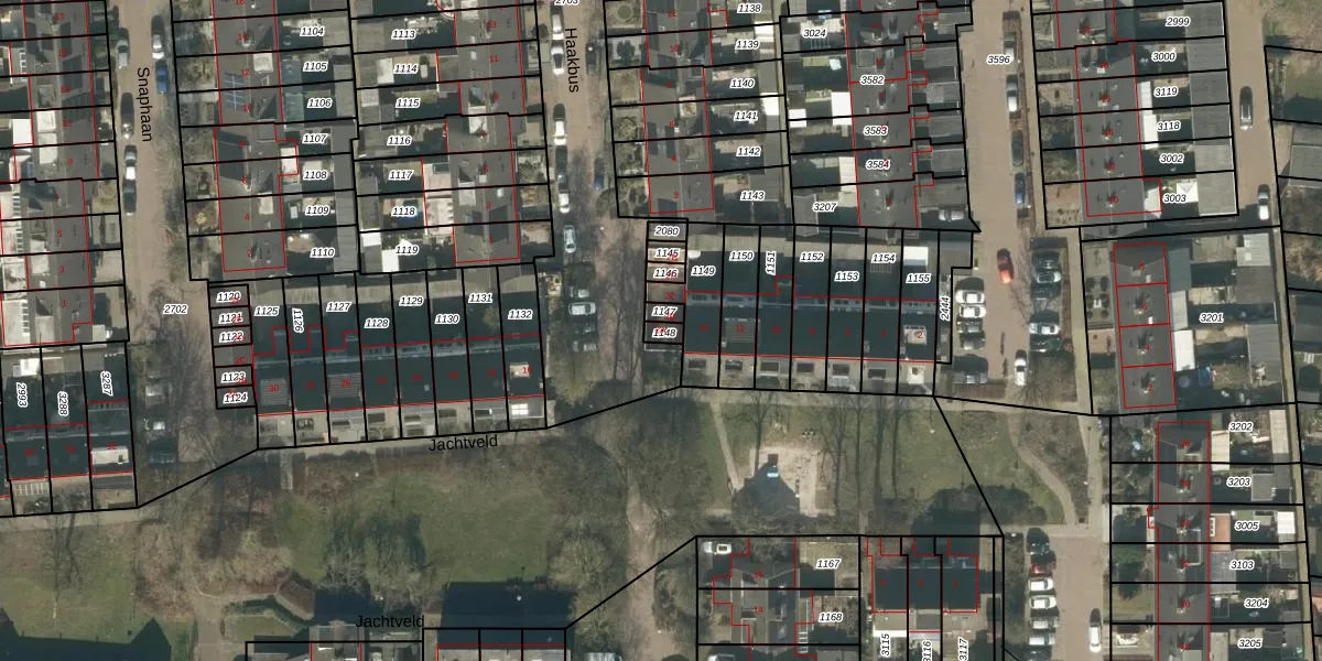 Gebruik de zoekbalk of klik op een perceel voor informatie over de adressen binnen dit perceel.