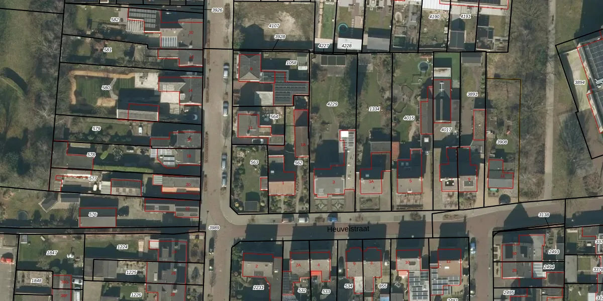 Heuvelstraat 1-A is gelegen op kadastraal perceel GZE00L562. Deze kadastrale aanduiding is uniek en wordt gebruikt door het Kadaster om eigendomsrechten en andere zakelijke rechten vast te leggen. Het perceel maakt onderdeel uit van de kadastrale gemeente Gilze en Rijen.