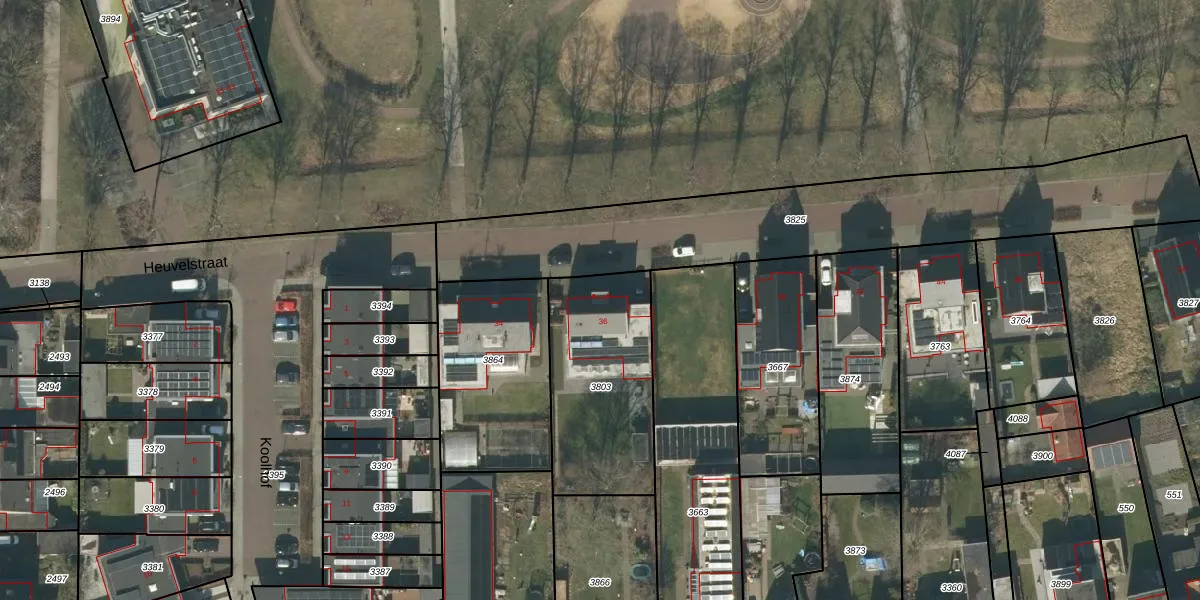Heuvelstraat 36 is gelegen op kadastraal perceel GZE00L3803. Deze kadastrale aanduiding is uniek en wordt gebruikt door het Kadaster om eigendomsrechten en andere zakelijke rechten vast te leggen. Het perceel maakt onderdeel uit van de kadastrale gemeente Gilze en Rijen.