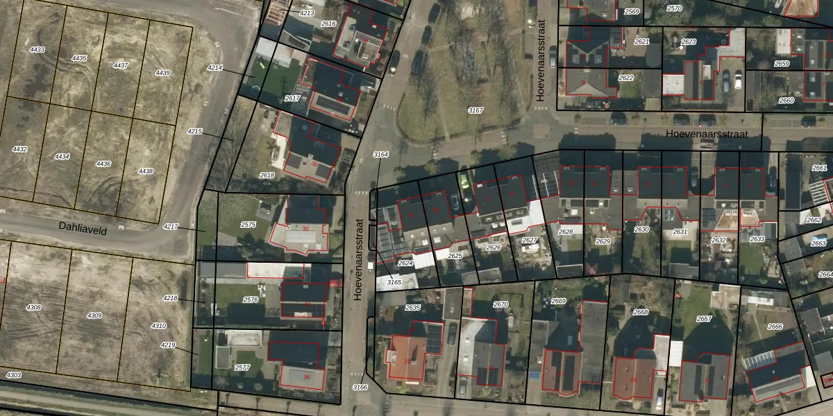Het perceel waarop Hoevenaarsstraat 21 staat heeft een oppervlakte van 326 m². Dit is een groot perceel. De perceeloppervlakte wordt geregistreerd door het Kadaster. Gedetailleerde informatie over de maten van dit perceel kunt u vinden in het rapport Kadastrale kaart met maatvoering van Hoevenaarsstraat 21.