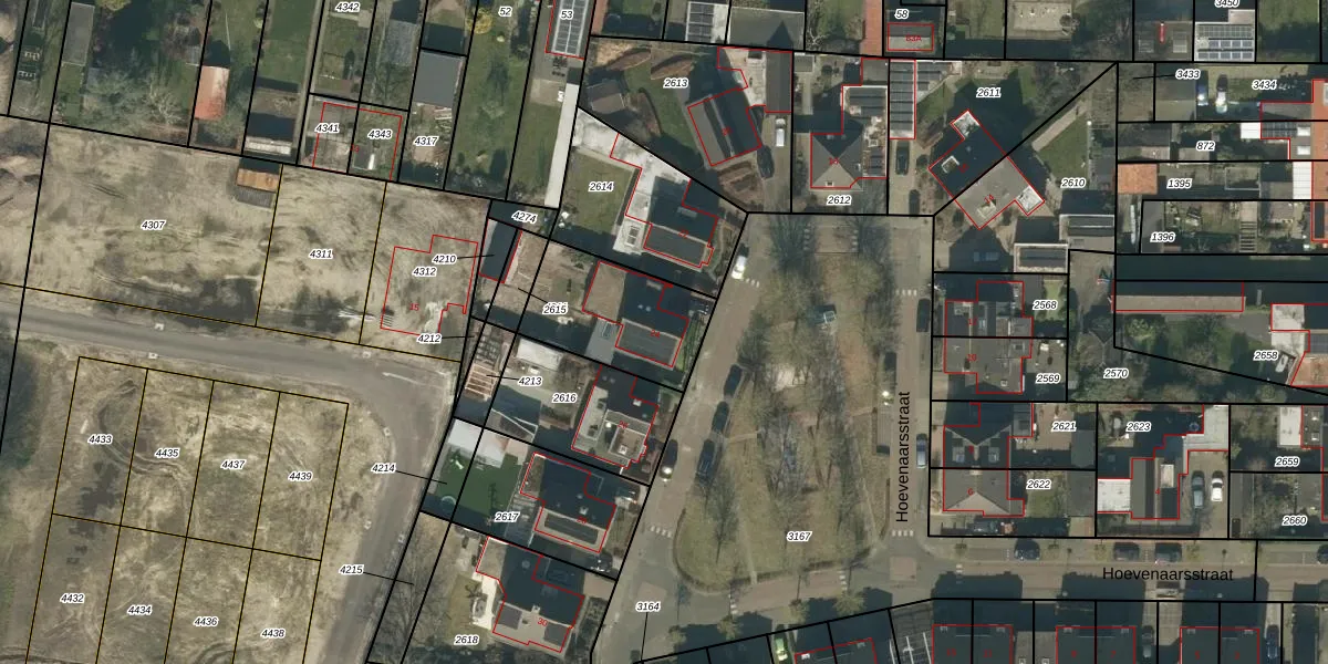 Het perceel waarop Hoevenaarsstraat 24 staat heeft een oppervlakte van 402 m². Dit is een groot perceel. De perceeloppervlakte wordt geregistreerd door het Kadaster. Gedetailleerde informatie over de maten van dit perceel kunt u vinden in het rapport Kadastrale kaart met maatvoering van Hoevenaarsstraat 24.