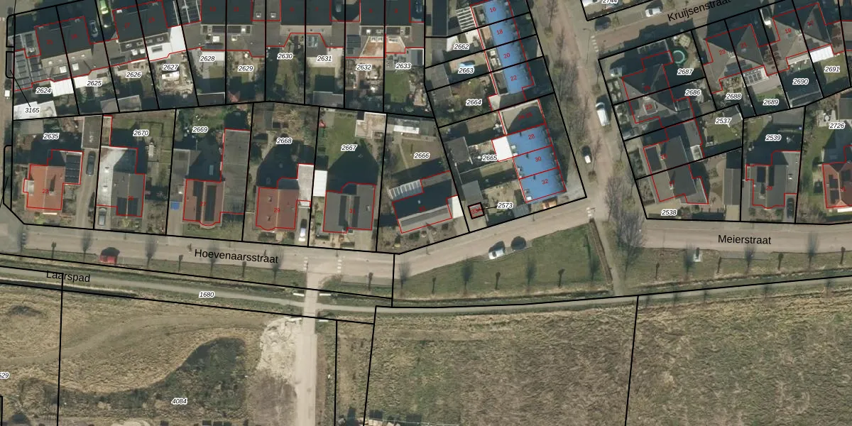Hoevenaarsstraat 33 is gelegen op kadastraal perceel GZE00L2666. Deze kadastrale aanduiding is uniek en wordt gebruikt door het Kadaster om eigendomsrechten en andere zakelijke rechten vast te leggen. Het perceel maakt onderdeel uit van de kadastrale gemeente Gilze en Rijen.