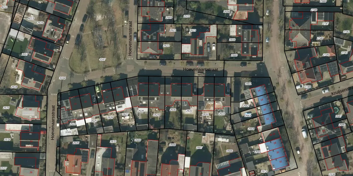 Hoevenaarsstraat 9 is gelegen op kadastraal perceel GZE00L2630. Deze kadastrale aanduiding is uniek en wordt gebruikt door het Kadaster om eigendomsrechten en andere zakelijke rechten vast te leggen. Het perceel maakt onderdeel uit van de kadastrale gemeente Gilze en Rijen.