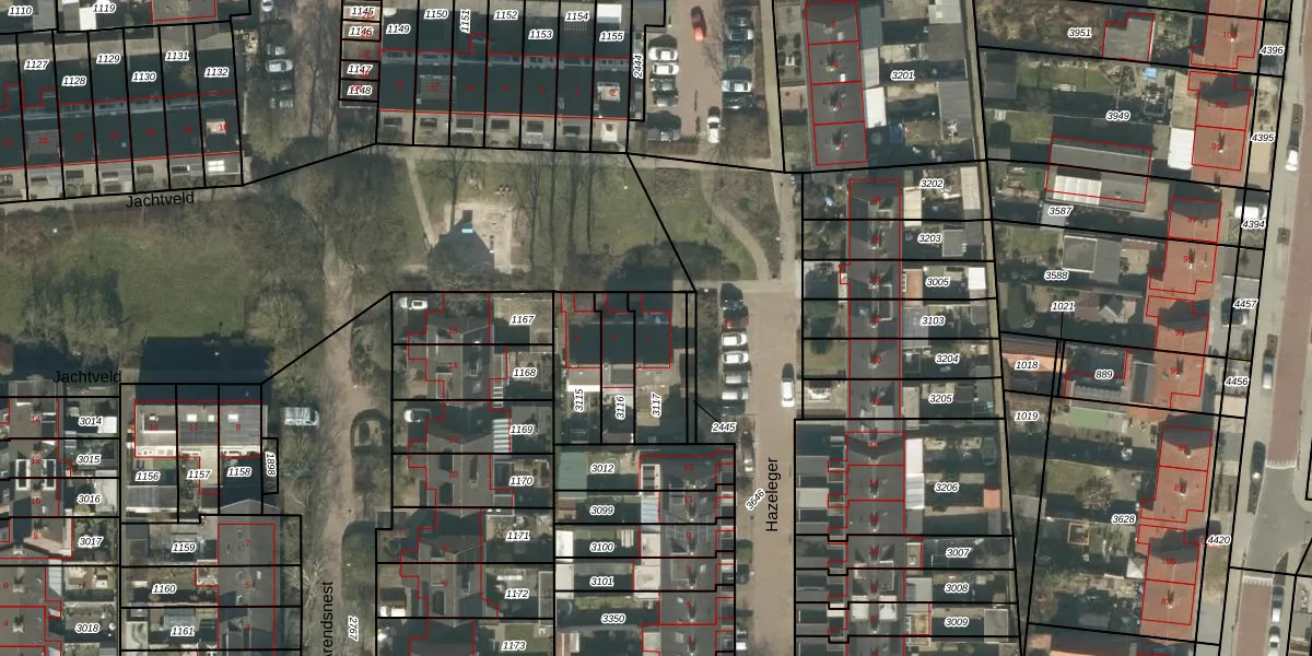 Het perceel waarop Jachtveld 1 staat heeft een oppervlakte van 187 m². Dit is een middelgroot perceel. De perceeloppervlakte wordt geregistreerd door het Kadaster. Gedetailleerde informatie over de maten van dit perceel kunt u vinden in het rapport Kadastrale kaart met maatvoering van Jachtveld 1.