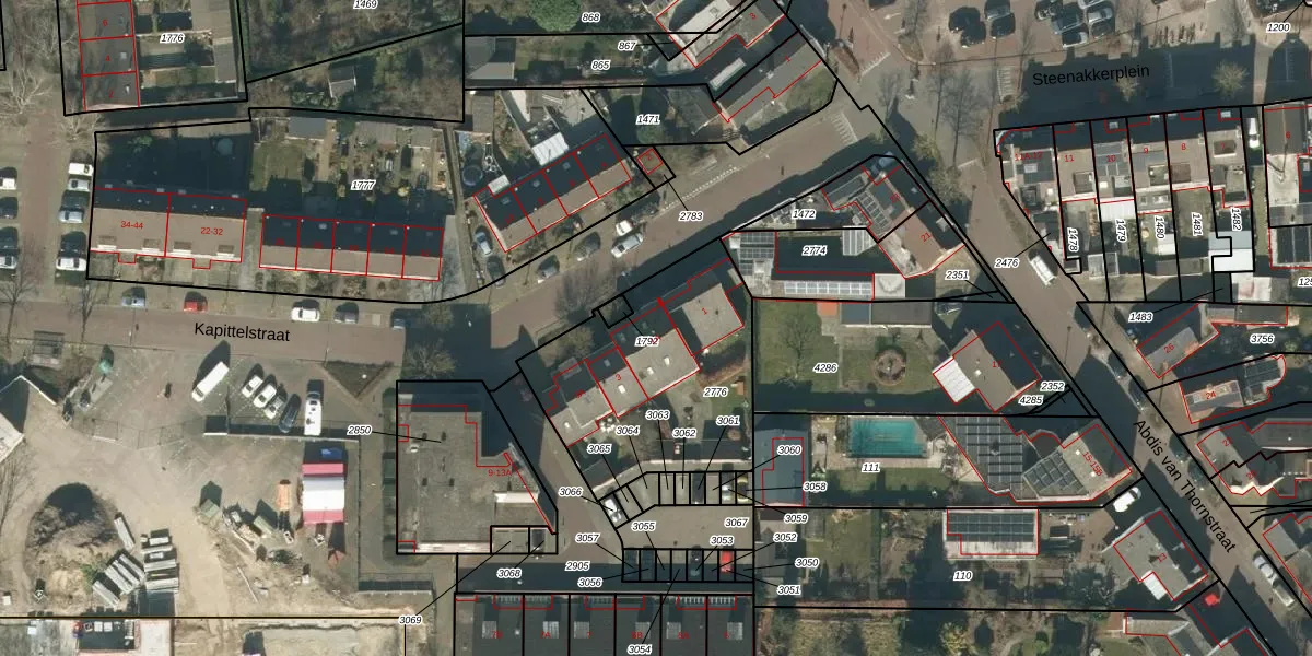 Het perceel waarop Kapittelstraat 1-A staat heeft een oppervlakte van 900 m². Dit is een groot perceel. De perceeloppervlakte wordt geregistreerd door het Kadaster. Gedetailleerde informatie over de maten van dit perceel kunt u vinden in het rapport Kadastrale kaart met maatvoering van Kapittelstraat 1-A.
