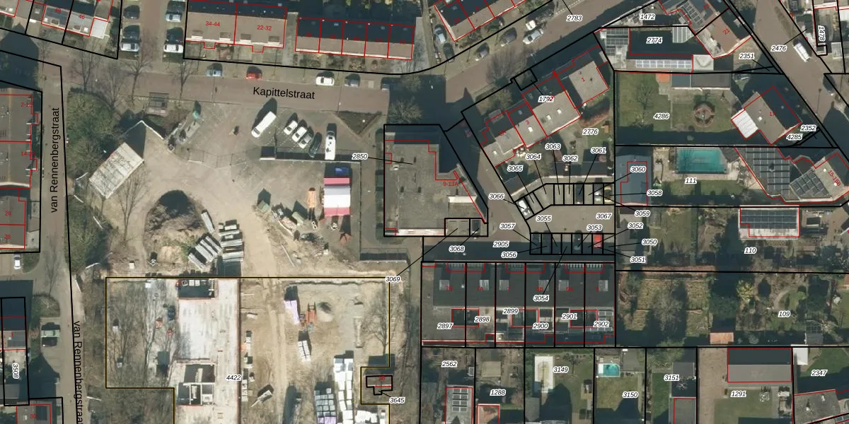 Het perceel waarop Kapittelstraat 11-B staat heeft een oppervlakte van 489 m². Dit is een groot perceel. De perceeloppervlakte wordt geregistreerd door het Kadaster. Gedetailleerde informatie over de maten van dit perceel kunt u vinden in het rapport Kadastrale kaart met maatvoering van Kapittelstraat 11-B.