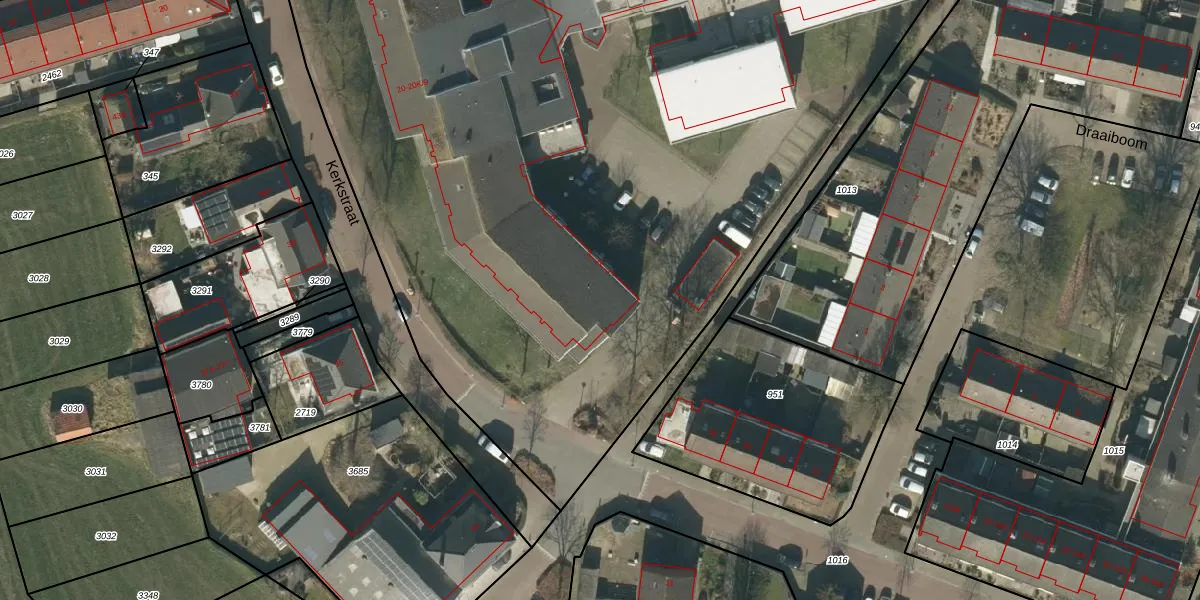 Het perceel waarop Kerkstraat 20-K-1 staat heeft een oppervlakte van 2,0 ha. Dit is een zeer groot perceel. De perceeloppervlakte wordt geregistreerd door het Kadaster. Gedetailleerde informatie over de maten van dit perceel kunt u vinden in het rapport Kadastrale kaart met maatvoering van Kerkstraat 20-K-1.