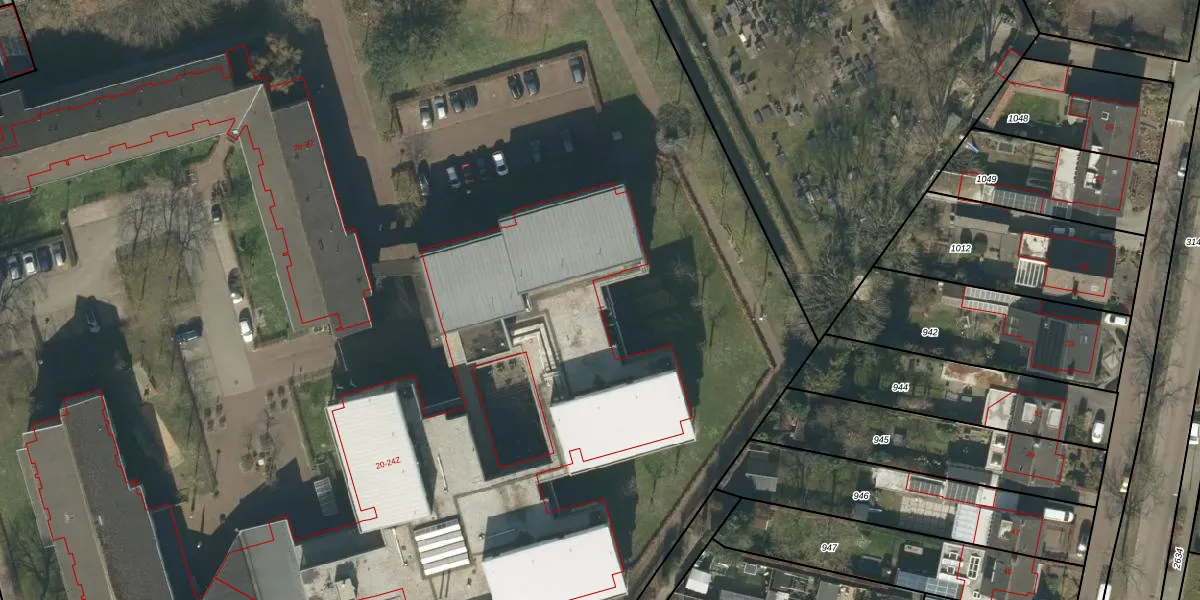 Het perceel waarop Kerkstraat 22-E staat heeft een oppervlakte van 2,0 ha. Dit is een zeer groot perceel. De perceeloppervlakte wordt geregistreerd door het Kadaster. Gedetailleerde informatie over de maten van dit perceel kunt u vinden in het rapport Kadastrale kaart met maatvoering van Kerkstraat 22-E.