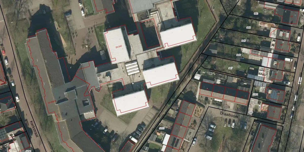 Het perceel waarop Kerkstraat 24-N staat heeft een oppervlakte van 2,0 ha. Dit is een zeer groot perceel. De perceeloppervlakte wordt geregistreerd door het Kadaster. Gedetailleerde informatie over de maten van dit perceel kunt u vinden in het rapport Kadastrale kaart met maatvoering van Kerkstraat 24-N.