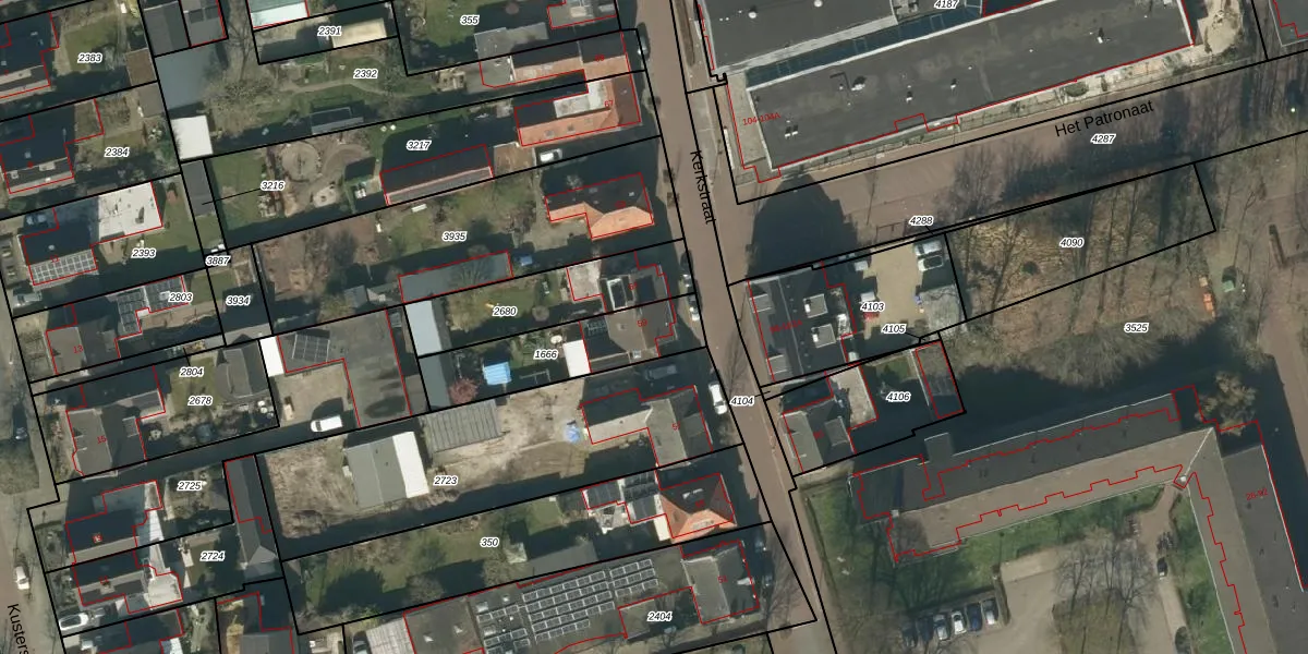 Het perceel waarop Kerkstraat 59 staat heeft een oppervlakte van 369 m². Dit is een groot perceel. De perceeloppervlakte wordt geregistreerd door het Kadaster. Gedetailleerde informatie over de maten van dit perceel kunt u vinden in het rapport Kadastrale kaart met maatvoering van Kerkstraat 59.