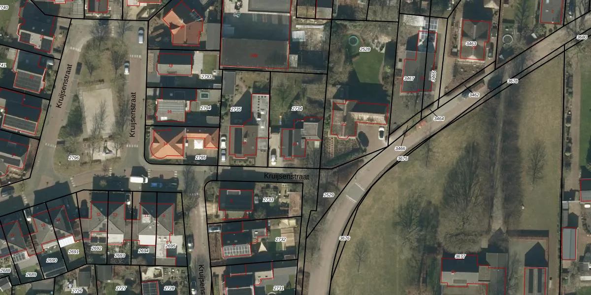 Kruijsenstraat 10 is gelegen op kadastraal perceel GZE00L2734. Deze kadastrale aanduiding is uniek en wordt gebruikt door het Kadaster om eigendomsrechten en andere zakelijke rechten vast te leggen. Het perceel maakt onderdeel uit van de kadastrale gemeente Gilze en Rijen.