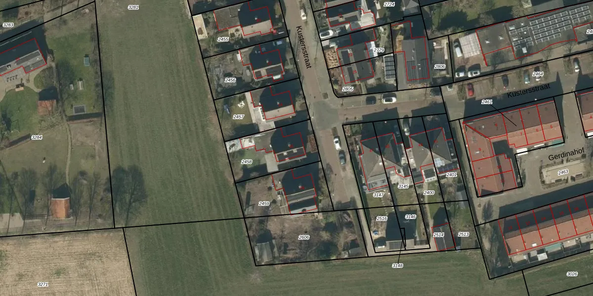 Kustersstraat 26 is gelegen op kadastraal perceel GZE00L2458. Deze kadastrale aanduiding is uniek en wordt gebruikt door het Kadaster om eigendomsrechten en andere zakelijke rechten vast te leggen. Het perceel maakt onderdeel uit van de kadastrale gemeente Gilze en Rijen.