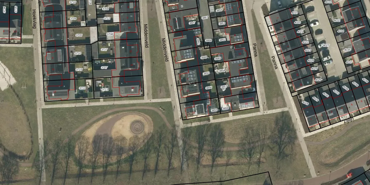 Het perceel waarop Middenveld 11 staat heeft een oppervlakte van 202 m². Dit is een middelgroot perceel. De perceeloppervlakte wordt geregistreerd door het Kadaster. Gedetailleerde informatie over de maten van dit perceel kunt u vinden in het rapport Kadastrale kaart met maatvoering van Middenveld 11.