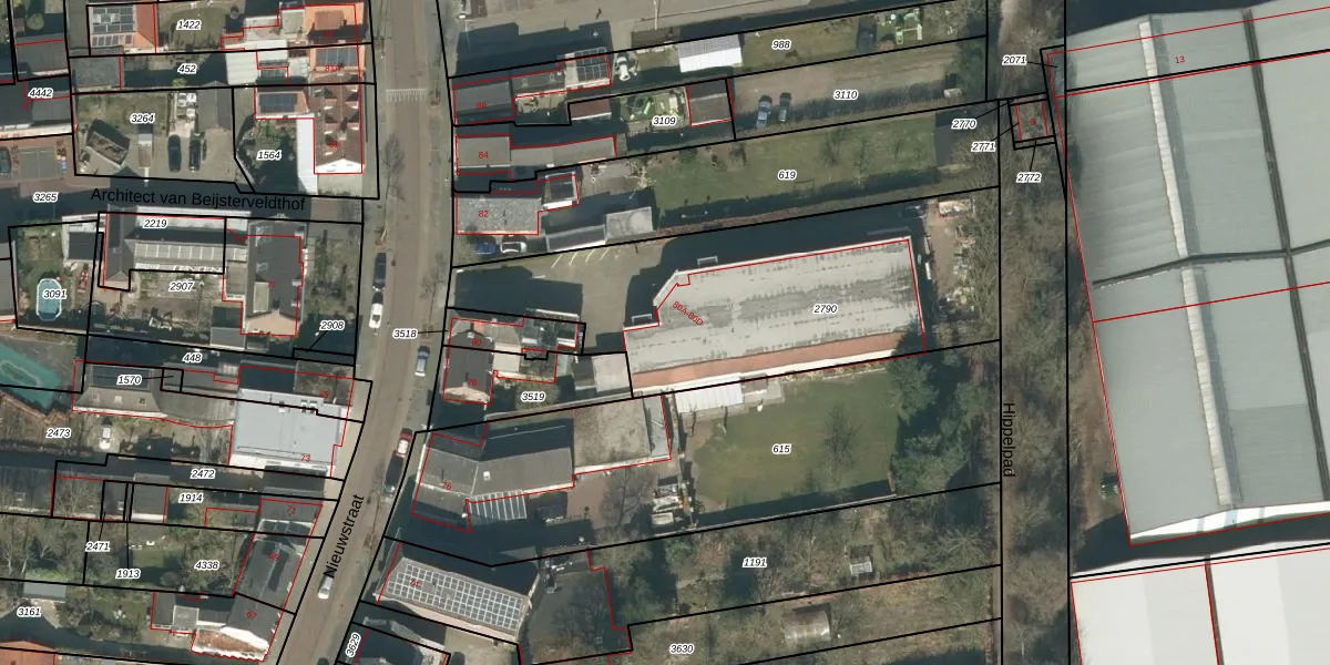 Het perceel waarop Nieuwstraat 80-C staat heeft een oppervlakte van 1595 m². Dit is een zeer groot perceel. De perceeloppervlakte wordt geregistreerd door het Kadaster. Gedetailleerde informatie over de maten van dit perceel kunt u vinden in het rapport Kadastrale kaart met maatvoering van Nieuwstraat 80-C.