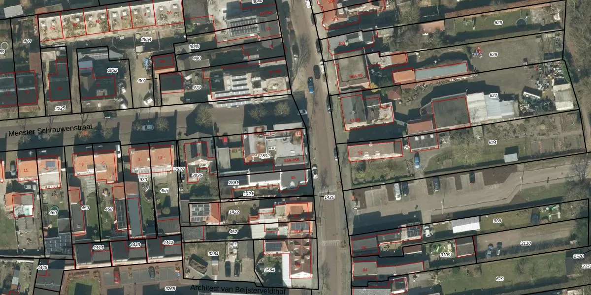 De informatie over dit adres is afkomstig uit officiële overheidsregistraties, voornamelijk de Basisregistratie Adressen en Gebouwen (BAG) en de Basisregistratie Kadaster (BRK). Deze gegevens worden beheerd door respectievelijk gemeenten en het Kadaster, en worden regelmatig bijgewerkt. Energielabelgegevens komen uit de database van de Rijksdienst voor Ondernemend Nederland (RVO).