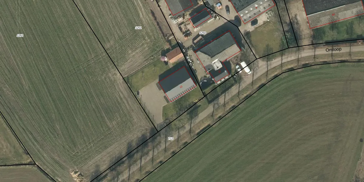 Het perceel waarop Omloop 12 staat heeft een oppervlakte van 4090 m². Dit is een zeer groot perceel. De perceeloppervlakte wordt geregistreerd door het Kadaster. Gedetailleerde informatie over de maten van dit perceel kunt u vinden in het rapport Kadastrale kaart met maatvoering van Omloop 12.